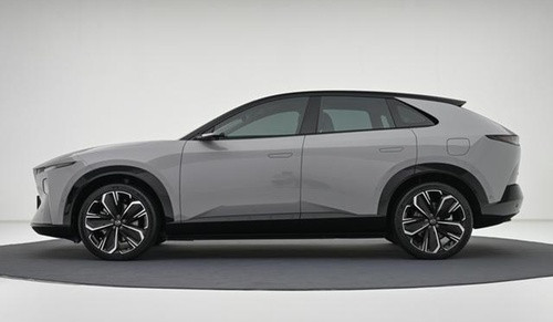 再看车身侧面,纯电和增程两种动力车型造型一样,A柱和车顶黑化处理,变成双色车身,就像穿了一件花衣服。而且前后轮眉和车门下边缘用亮黑色材质包裹,还有“MAZDA”英文标识,就像给衣服上绣了个小名牌。电子外后视镜可真是个新鲜玩意儿,还集成转向灯功能,车门内侧还有显示屏,这就好比给车的眼睛装了个智能助手。隐藏式车门把手和D柱位置的风道,官方说有9个风道,能降低风噪,这设计就像给车穿上了一件防噪音的小铠甲。21英寸五辐花瓣轮辋,255/40 R21的轮胎规格,看着就很霸气。